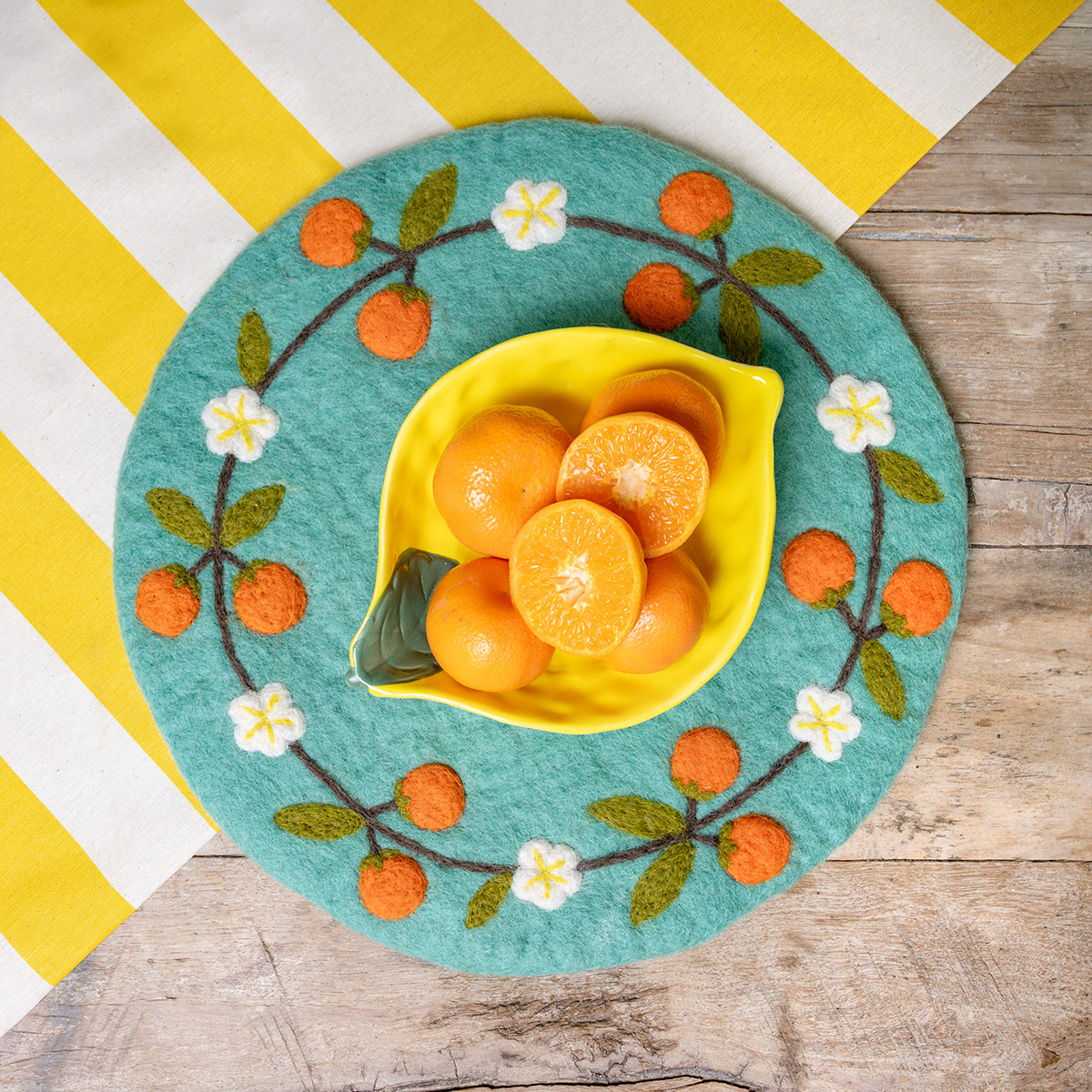 Wunderschöner Filz-Untersetzer handgefertigt von Frauen in Nepal.