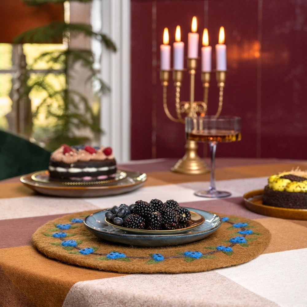 Sjaal met VerhaalFilz-Untersetzer 35 cm rond Bes Blauw