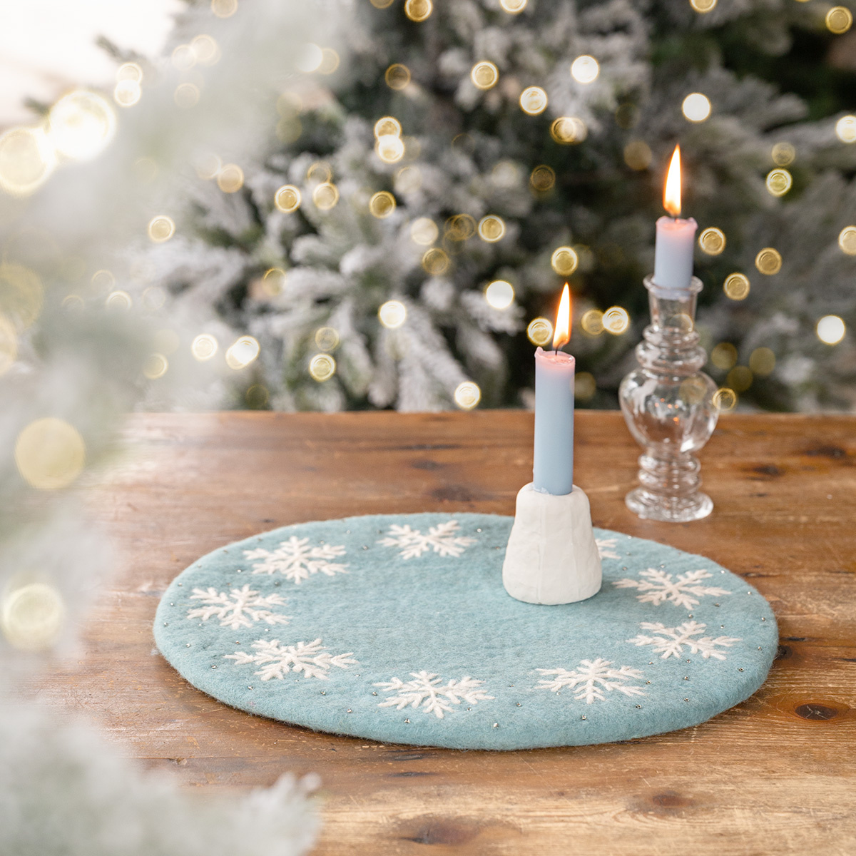 Sjaal met VerhaalFilz-Untersetzer 35 cm rond Sneeuwvlok ijsblauw