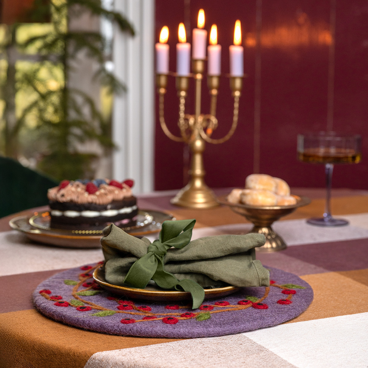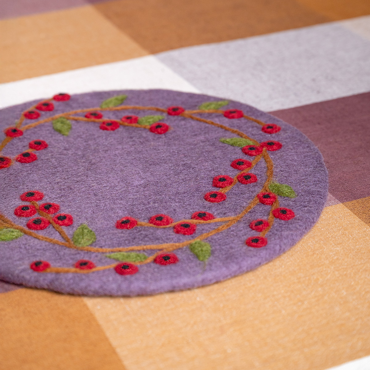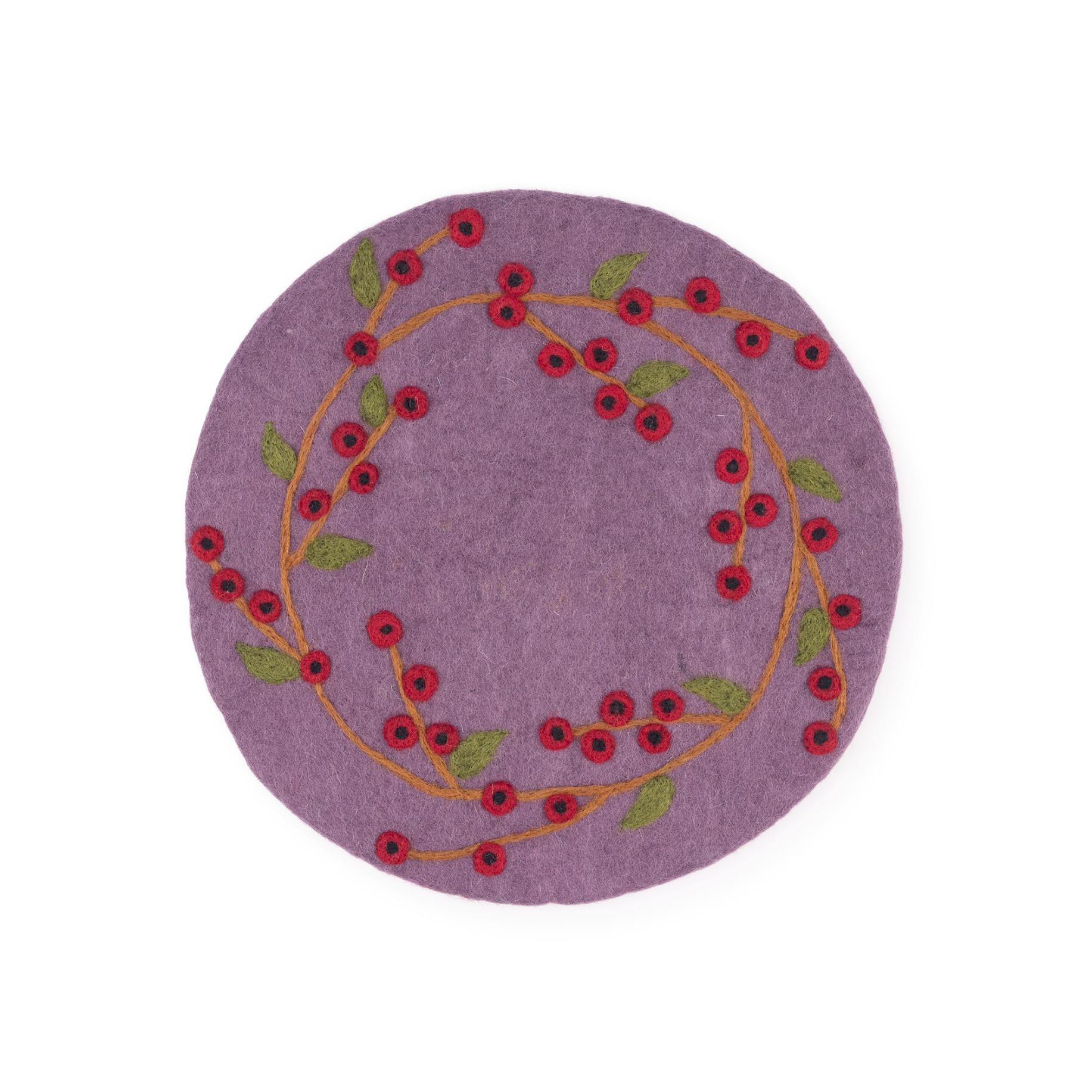 Wunderschöner Filz-Untersetzer handgefertigt von Frauen in Nepal. Sie können den Untersetzer auch als Sitzbelag auf einem Stuhl oder als Teppich unter einem Beistelltisch verwenden!