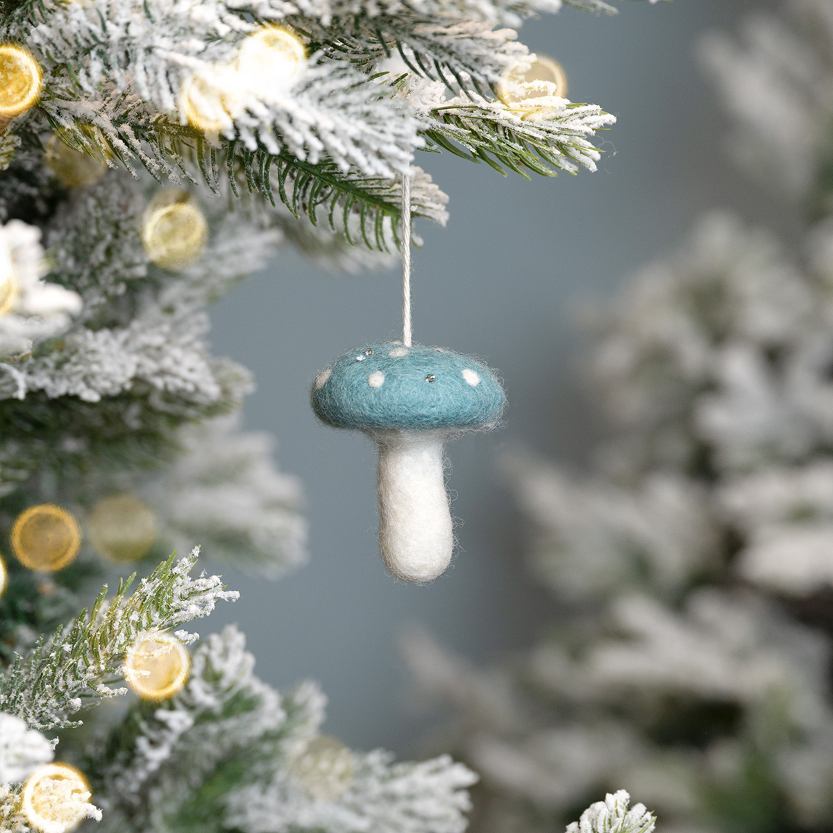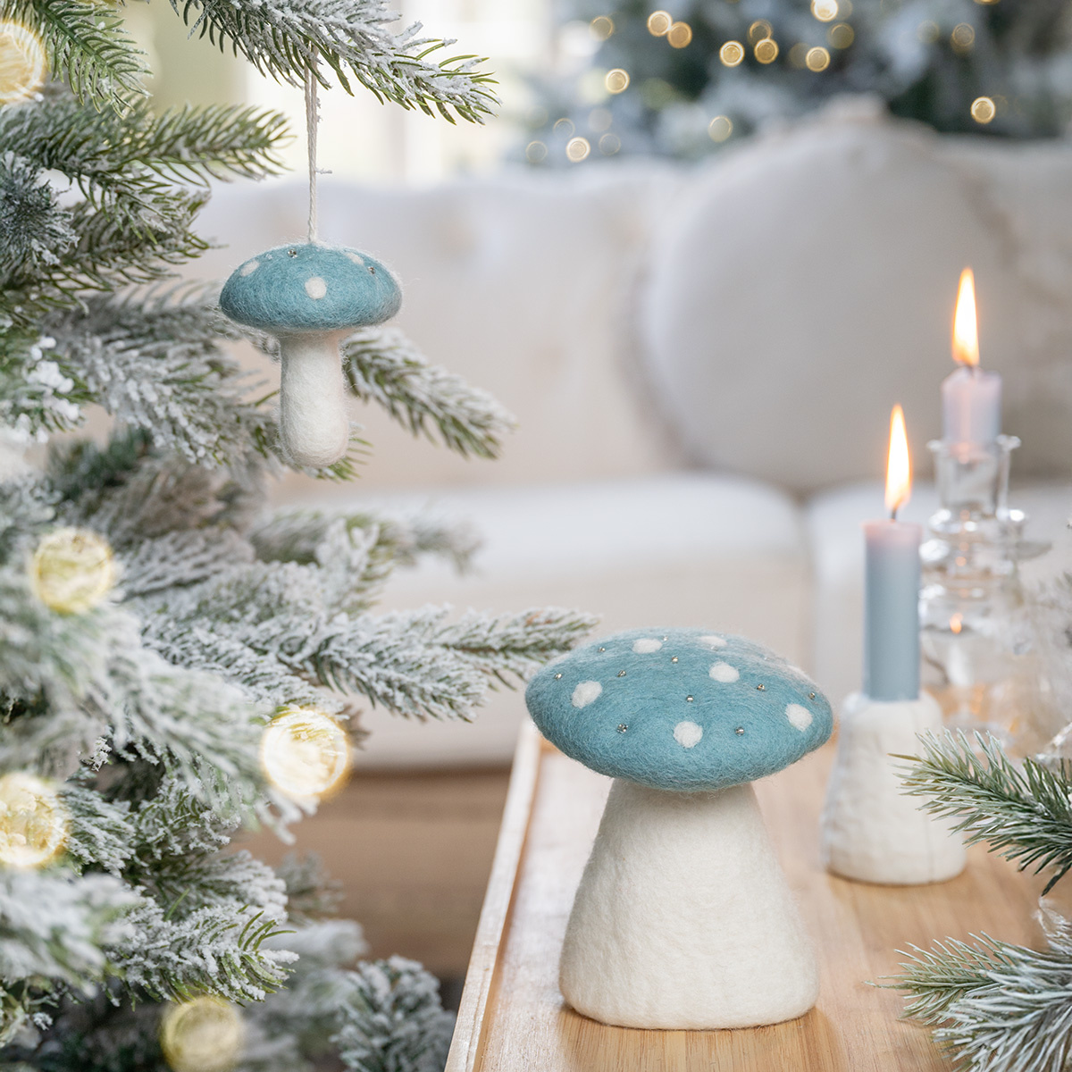 Sjaal met Verhaal Filz Weihnachtshänger Paddenstoel ijsblauw