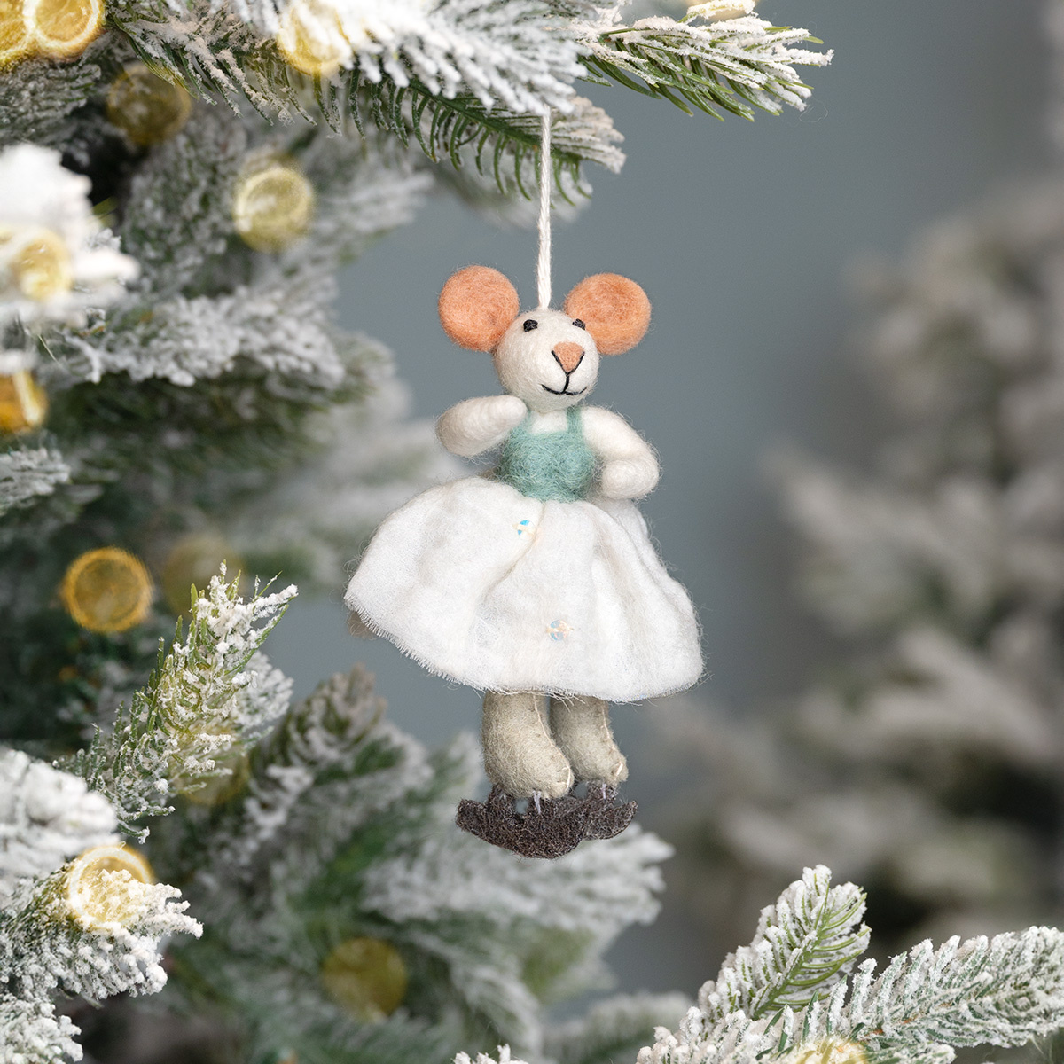 Sjaal met Verhaal Filz Weihnachtshänger Muis Kunstschaatster