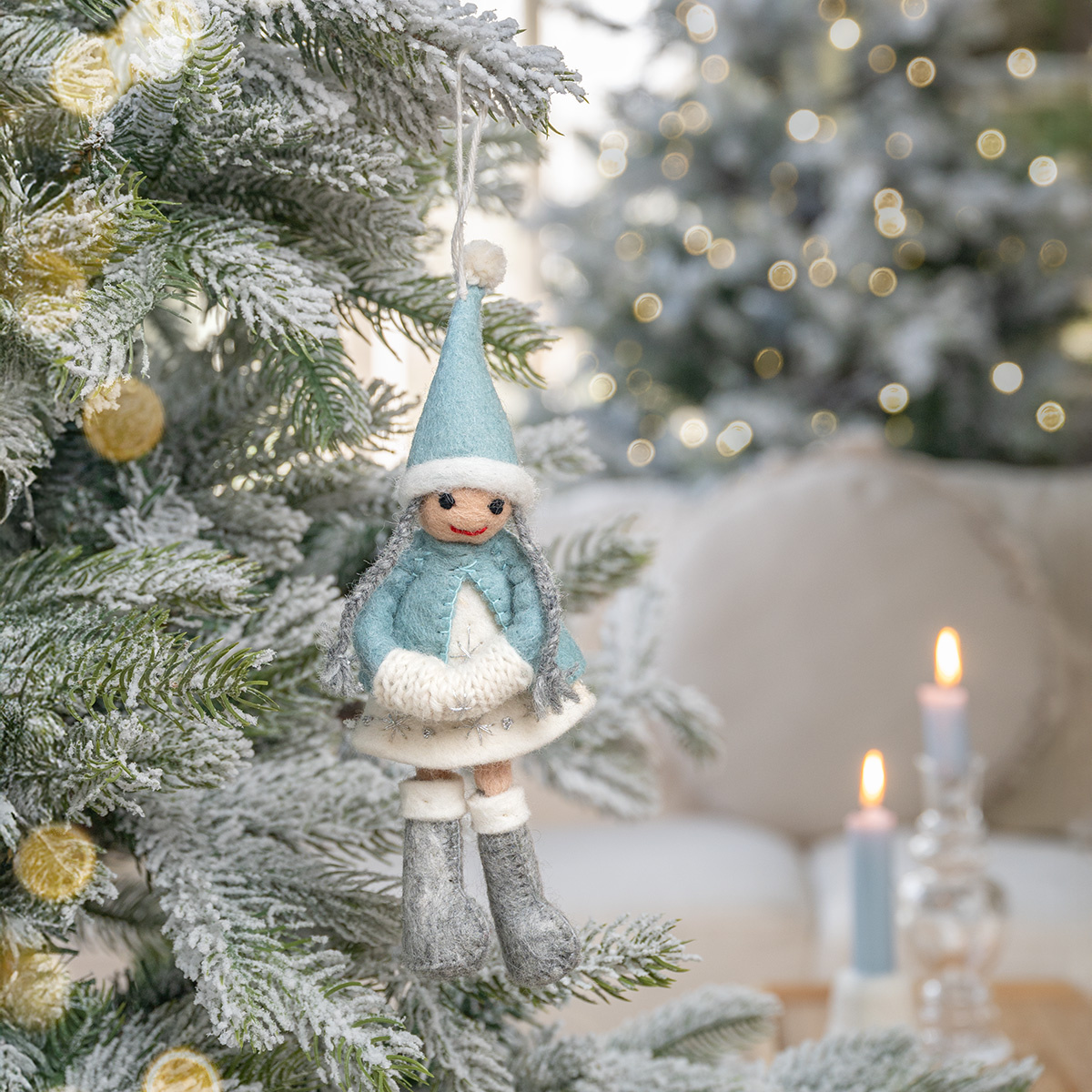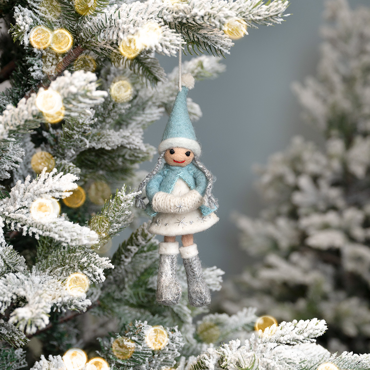 Sjaal met Verhaal Filz Weihnachtshänger Winterfee ijsblauw