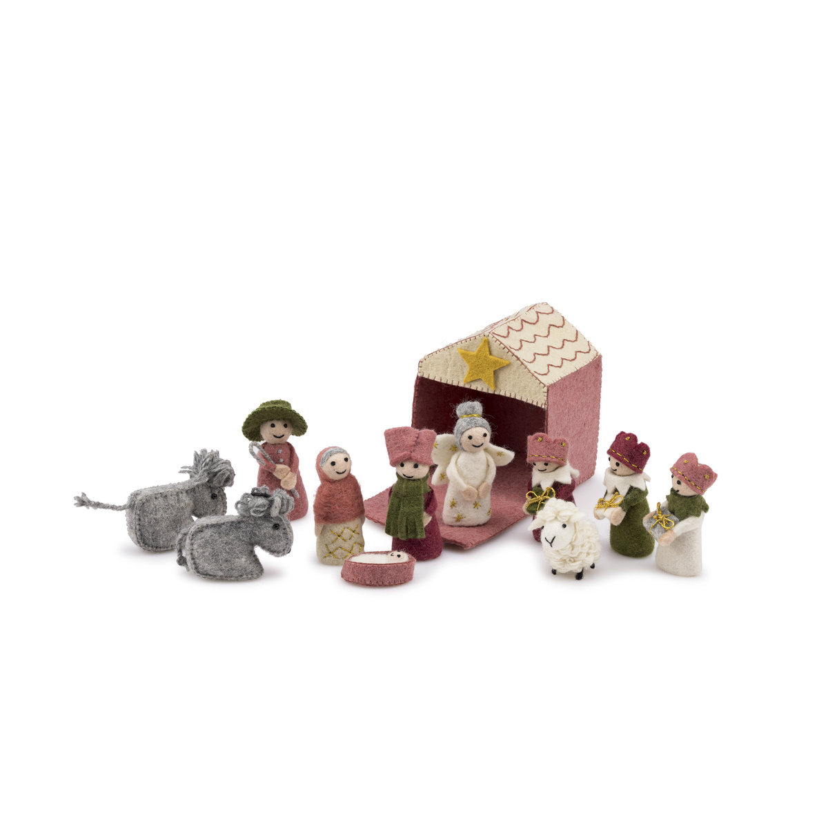 Sjaal met Verhaal Filz-Weihnachtskrippe cyclaam/oudroze