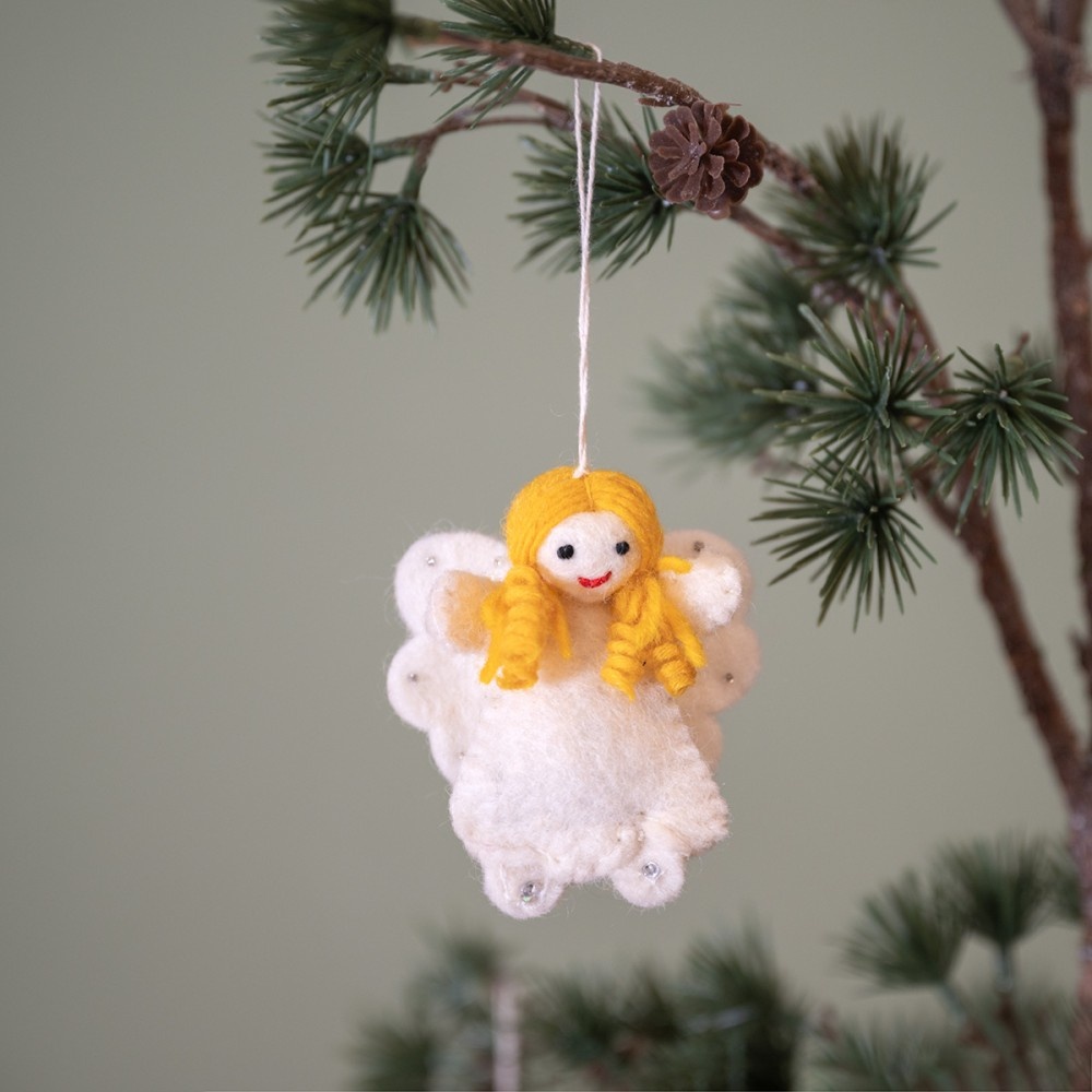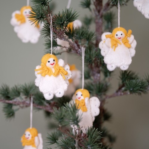 Sjaal met Verhaal Filz Weihnachtshänger Kerstengeltje Mini wit