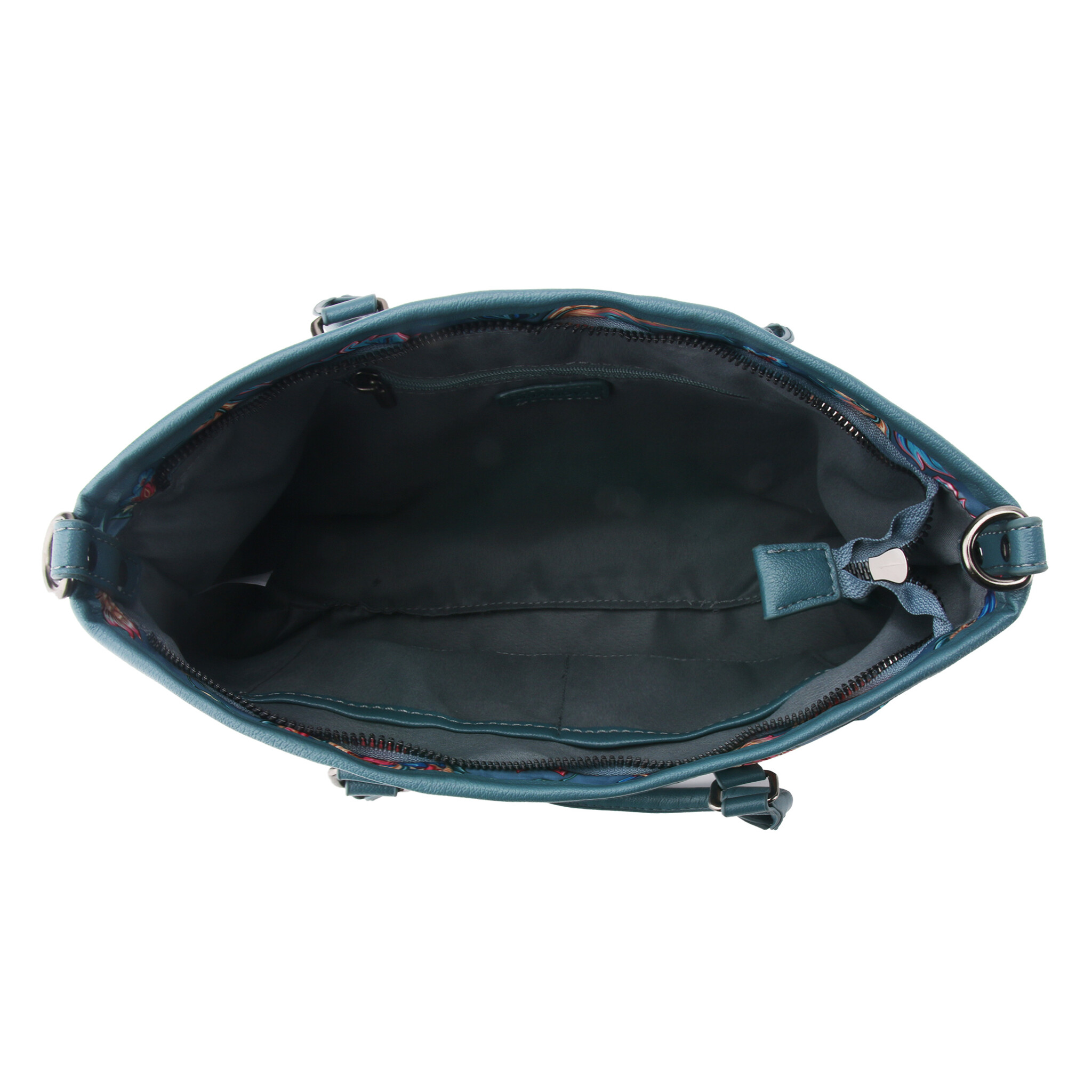 Hauptfach mit Reissverschluss, ein inneres abschliessbares Fach und noch zwei separate Fächer. Eine kleine verschliessbare Tasche auf der Vorderseite der Tasche. Der Schultergurt lässt sich abnehemen.