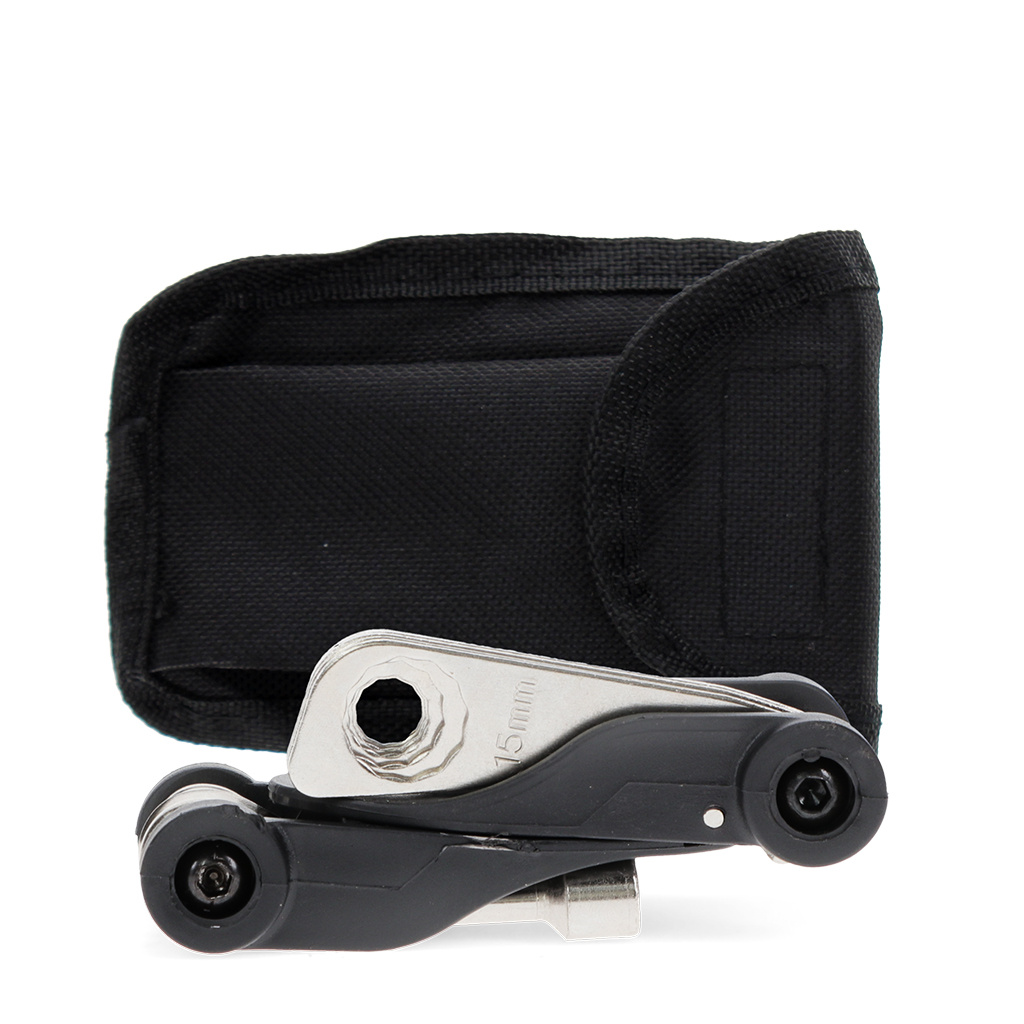 Multitool für die schnelle Reparatur unterwegs. Bestehend aus: 6 x Sechskantschlüsseln, 5x Ringschlüssel, 2 x Schraubenziehern, 1x Steckschlüssel.