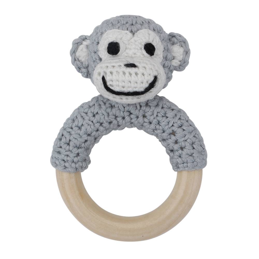 Sindibaba Rassel Äffchen am Holzring grau