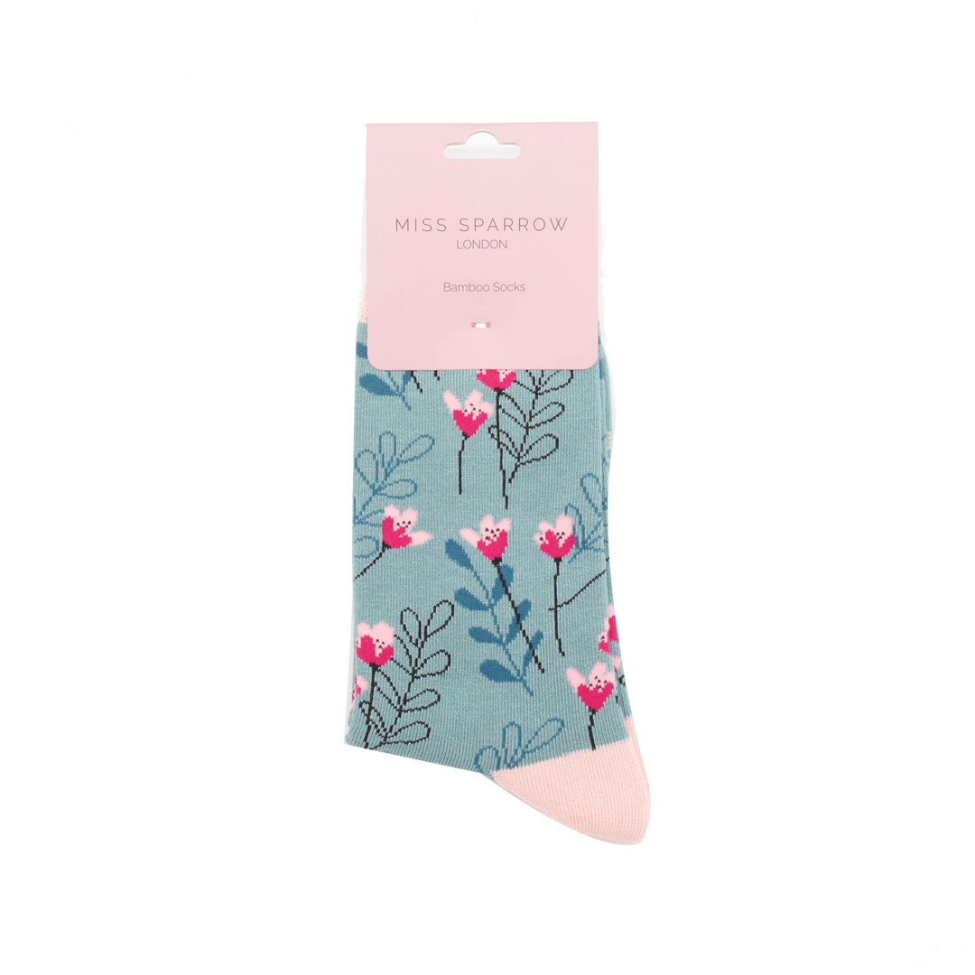 Miss Sparrow Socken Bamboo Wild Floral duck egg