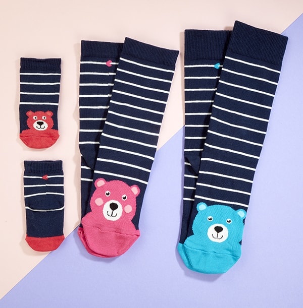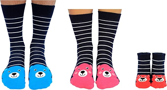 Ein lustiges Geschenk für Babies und ihren Mama und Papa - eine Geschenkbox mit Socken für alle drei! Ein Paar Socken 40-46, ein Paar Socken 37 -42 und ein Paar Babysocken (Neugeborene+).