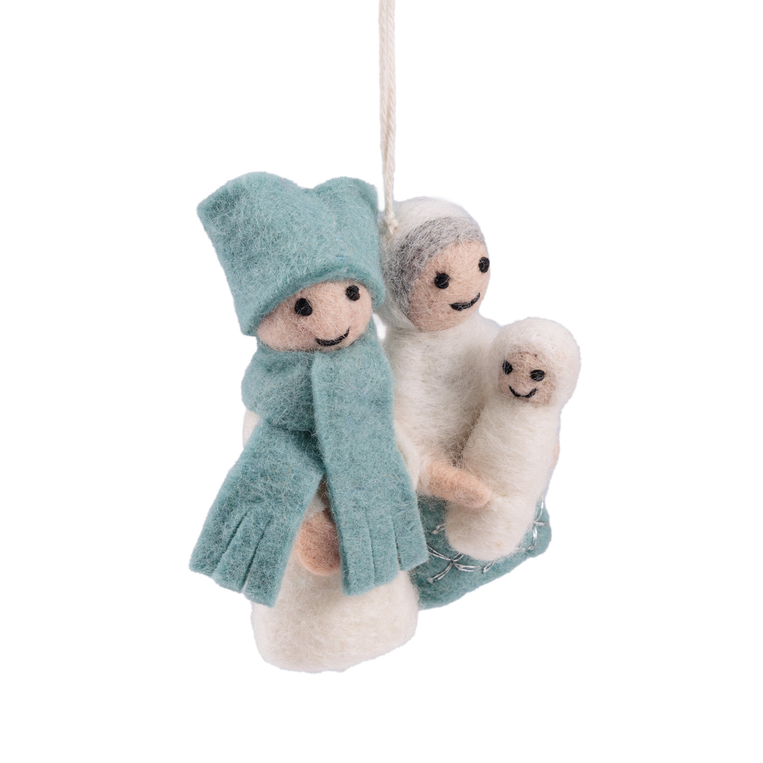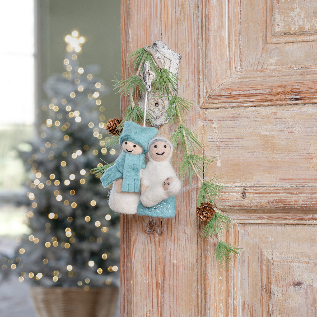 Sjaal met Verhaal Felt Christmas Hanger Jozef & Maria ijsblauw/wit