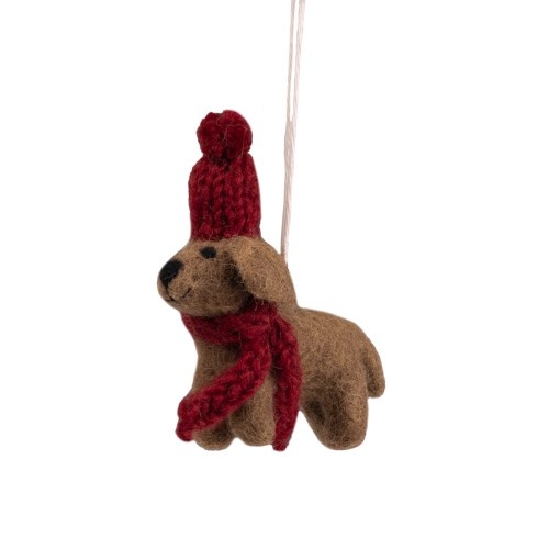 Sjaal met Verhaal Felt Christmas Hanger Teckel met Muts
