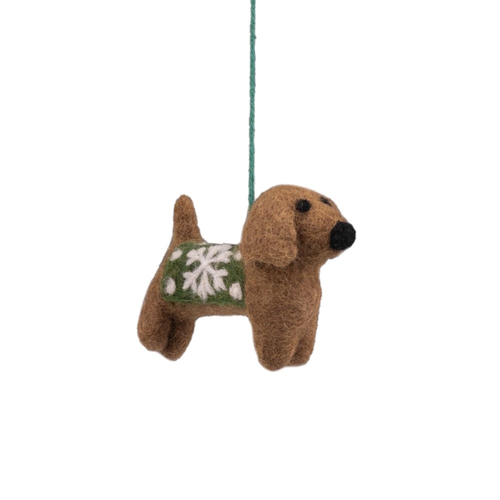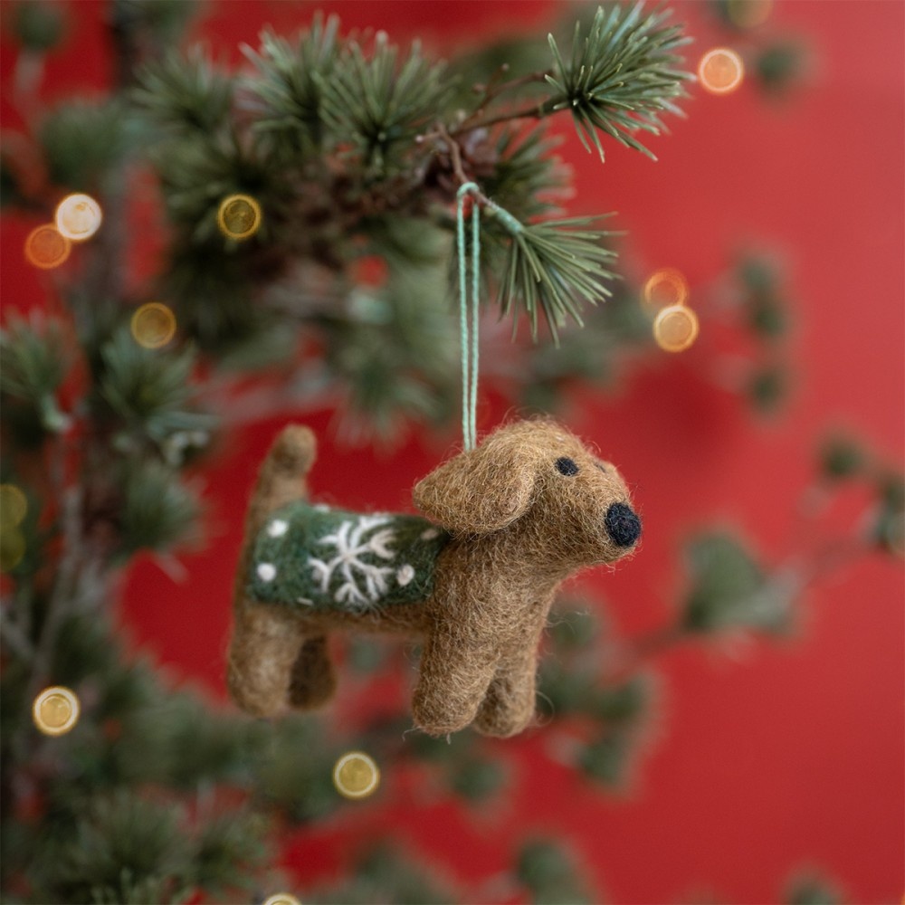 Sjaal met Verhaal Felt Christmas Hanger Teckel Sneeuwvlok groen