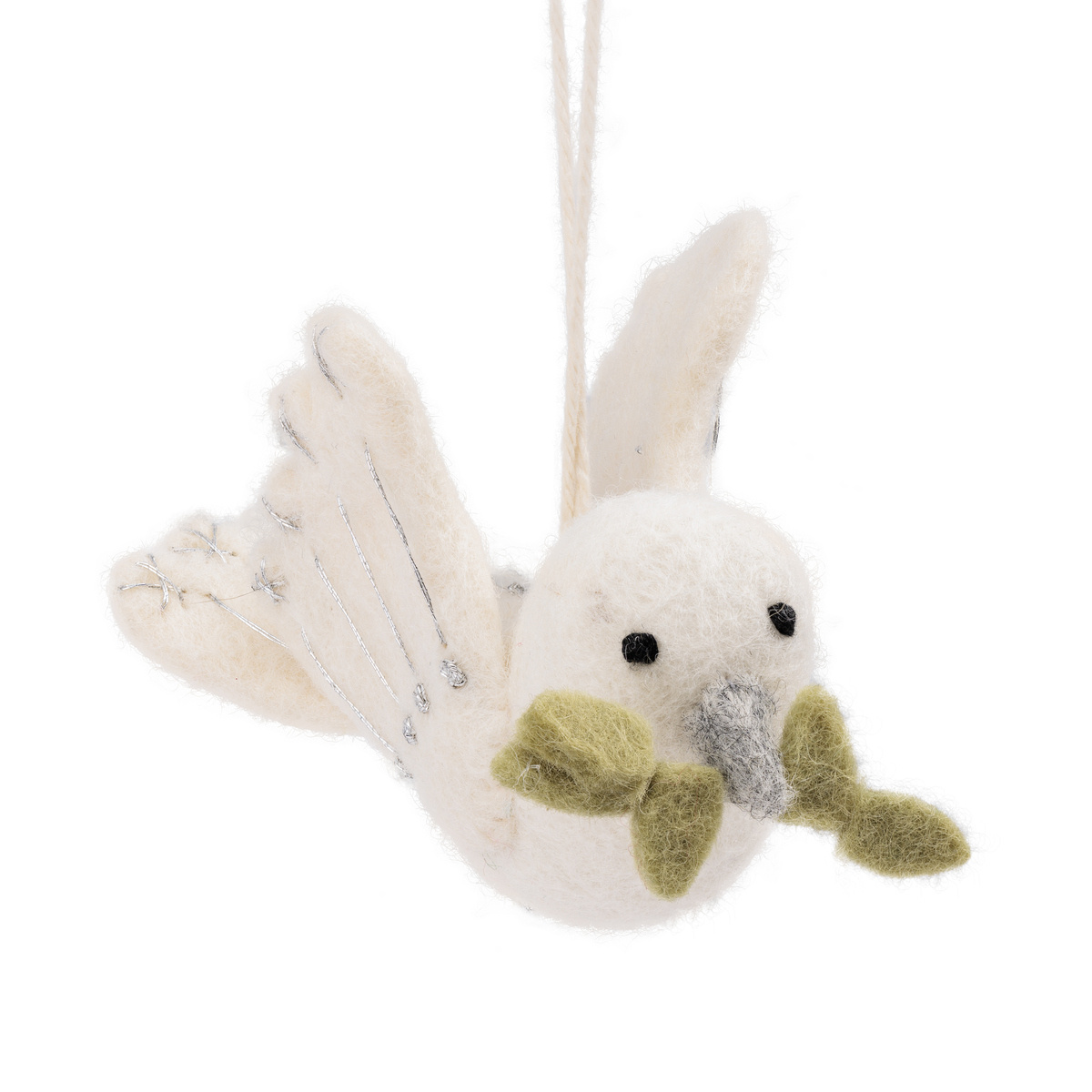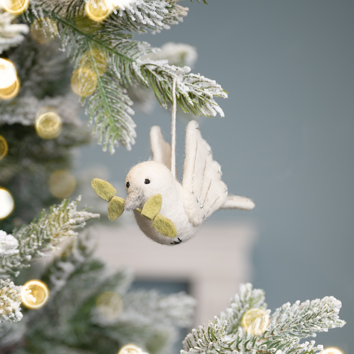 Sjaal met Verhaal Felt Christmas Hanger Vredesduif met Olijftakje zilver