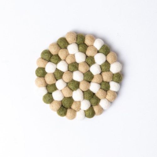 Beautiful felt coaster handmade by women in Nepal. You can also use the coaster as a seat cover on a chair or as a rug under a side table!