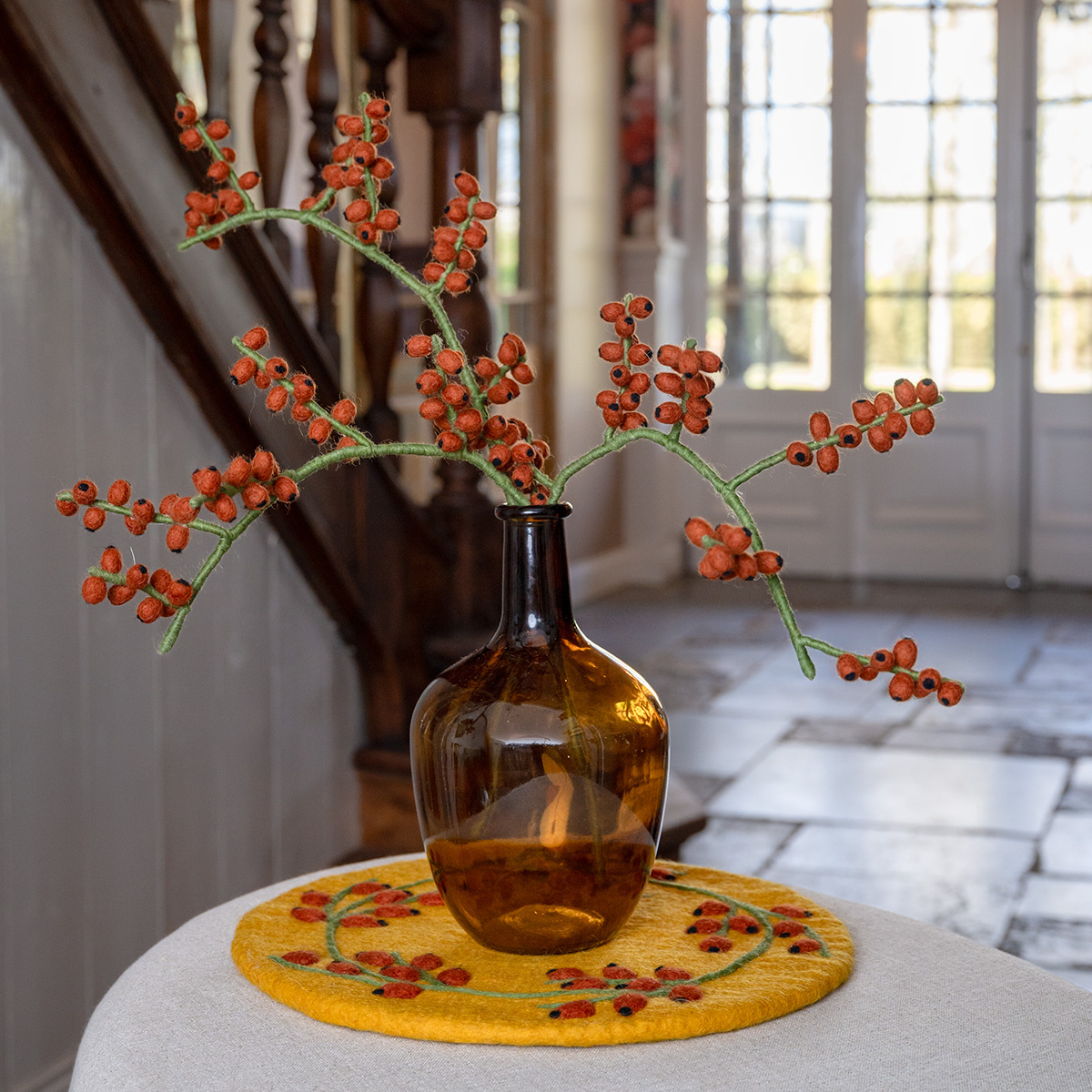 Sjaal met Verhaal Felt coaster 35 cm rond Rozenbottel