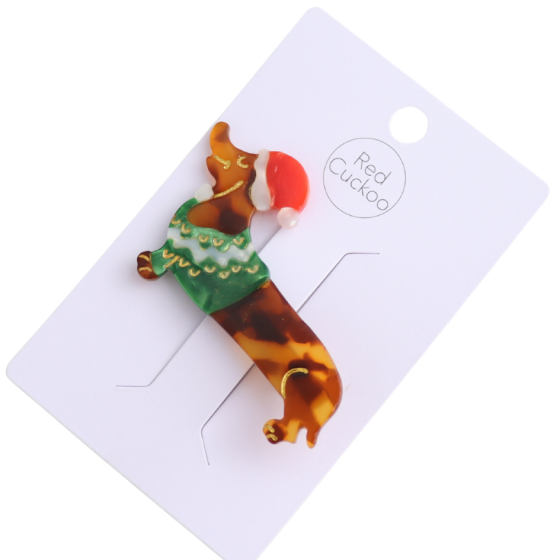 Red Cuckoo Hair Clip Xmas Dog
