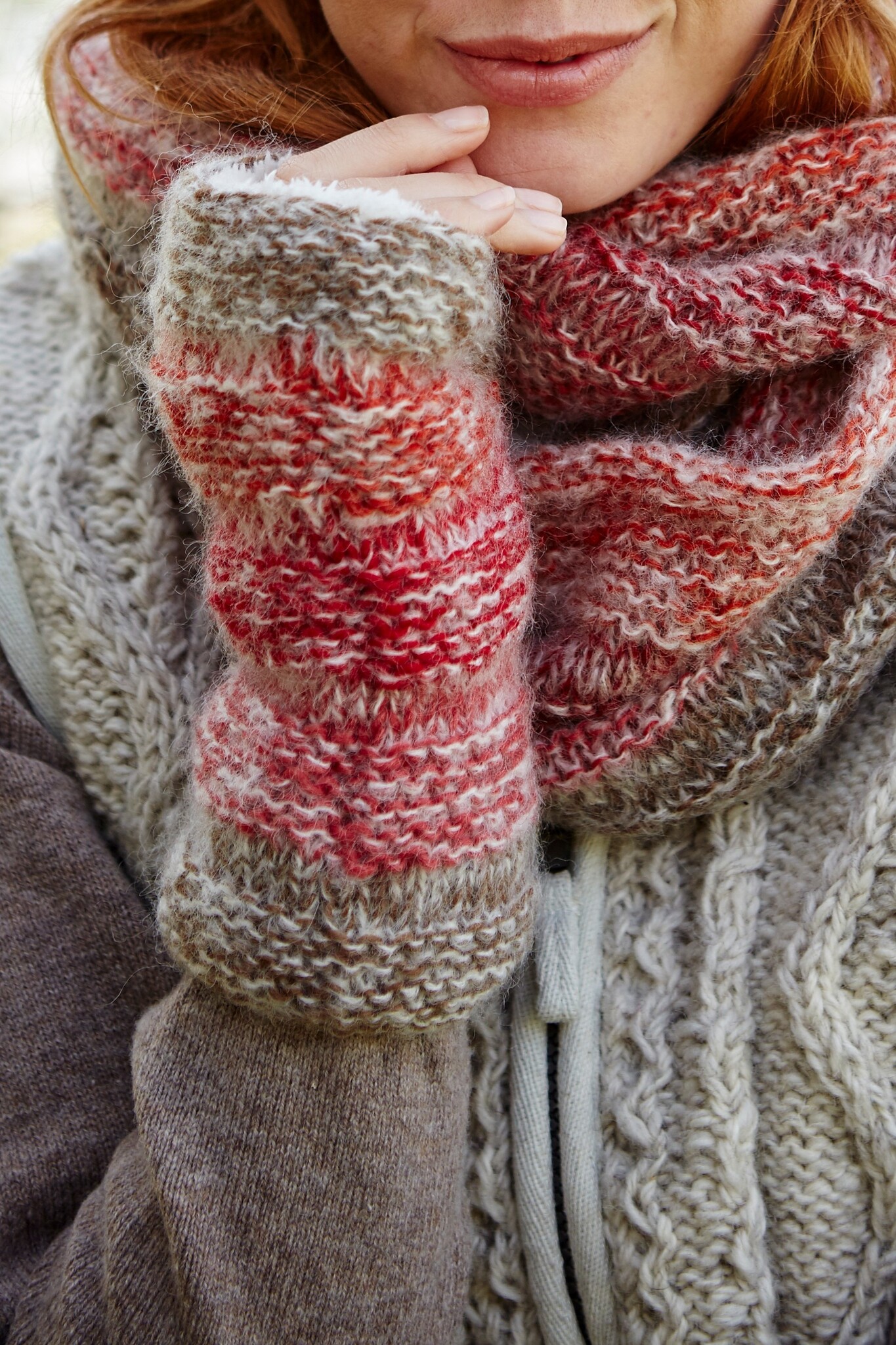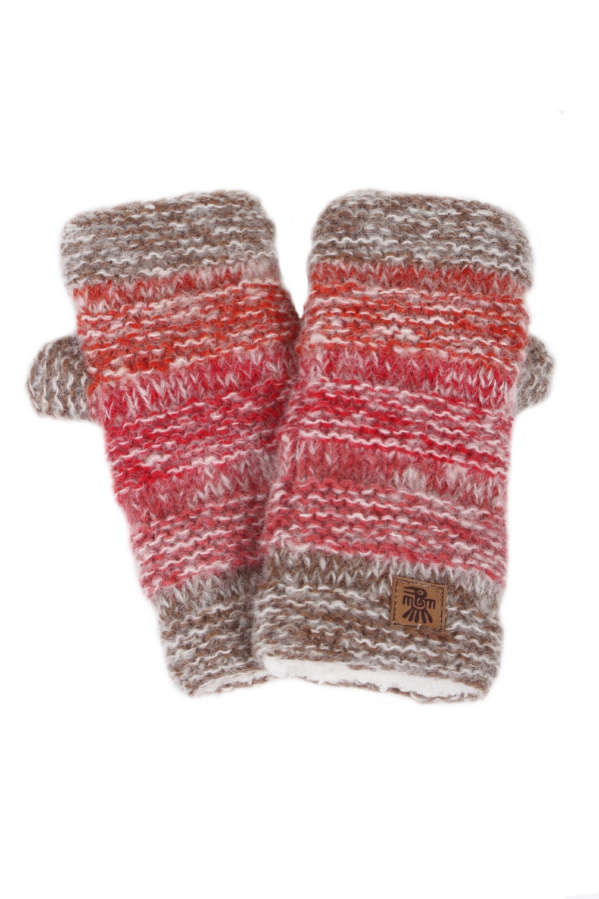 Hand knitted wool handwarmers, with warm and soft sherpa fleece lining. Fair trade and handmade in Nepal. Lined with soft fluffy sherpa fleece for extra warmth and comfort.