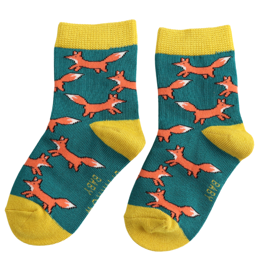 Miss Sparrow Kids Socks Bamboo Foxes teal 2-3Y