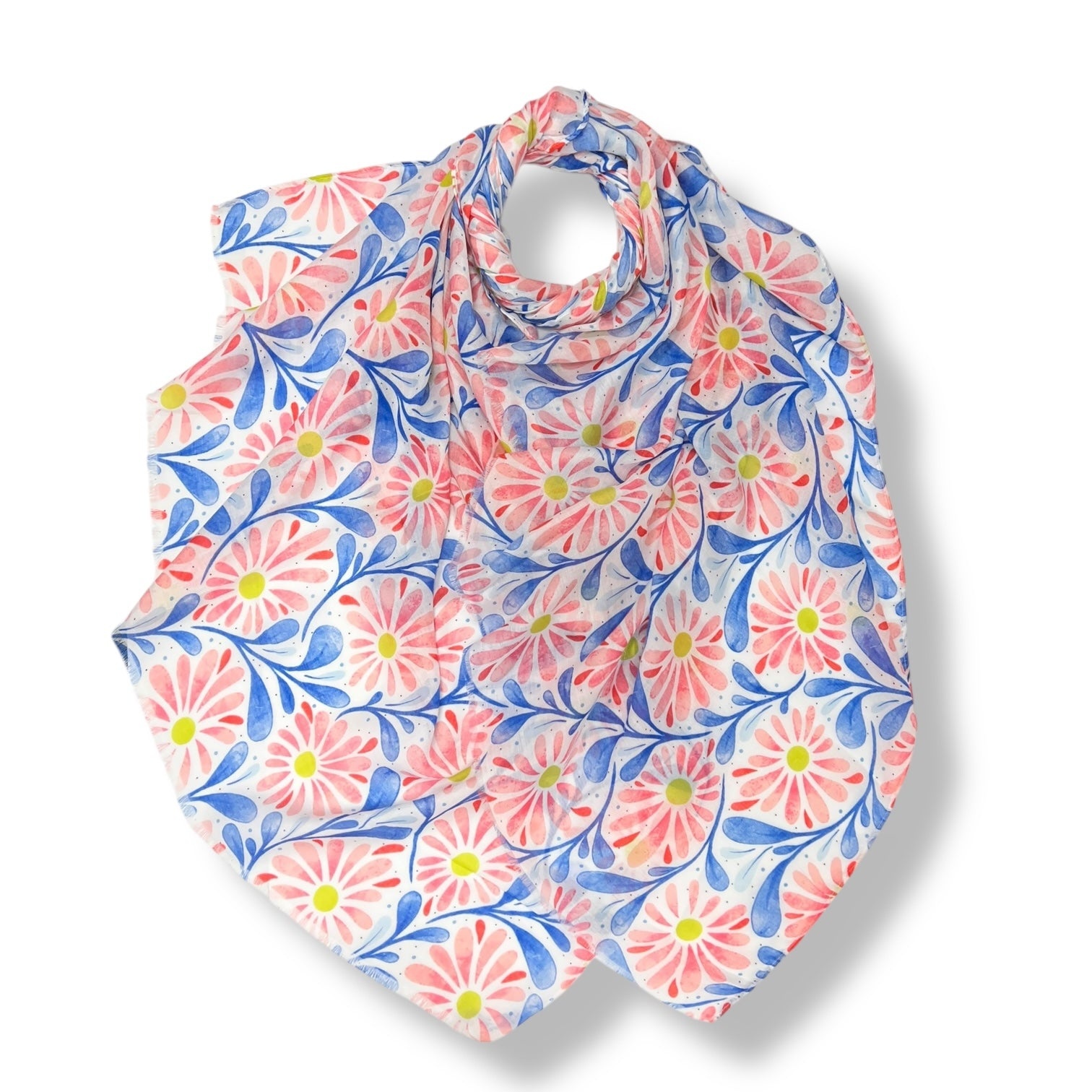 Beautiful, large scarve with golden patches and feathered edge which can be worn as scarve or as wrap.