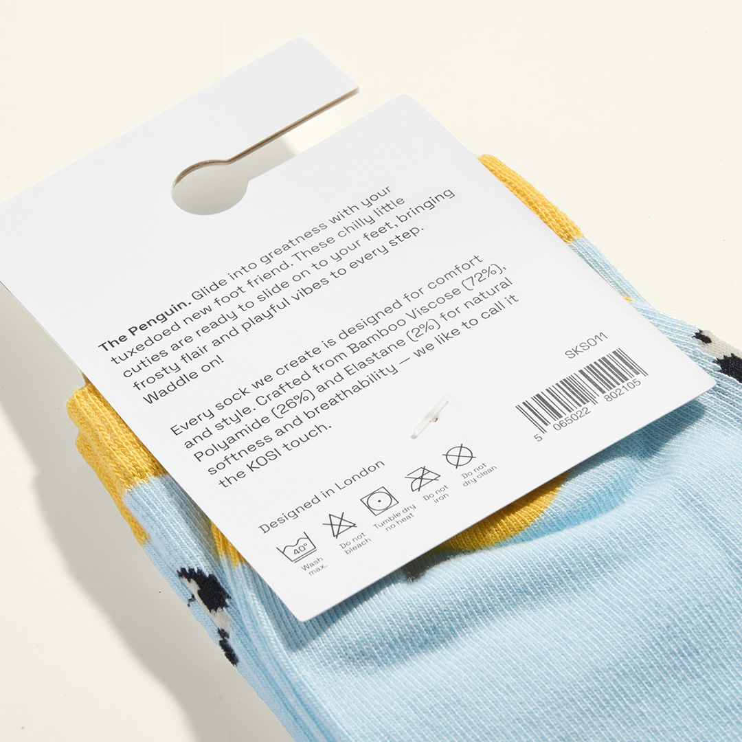 The Penguin. Glide into greatness with your tuxedoed new foot friend. These chilly little cuties are ready to slide on to your feet, bringing frosty flair and playful vibes to every step. Waddle on!